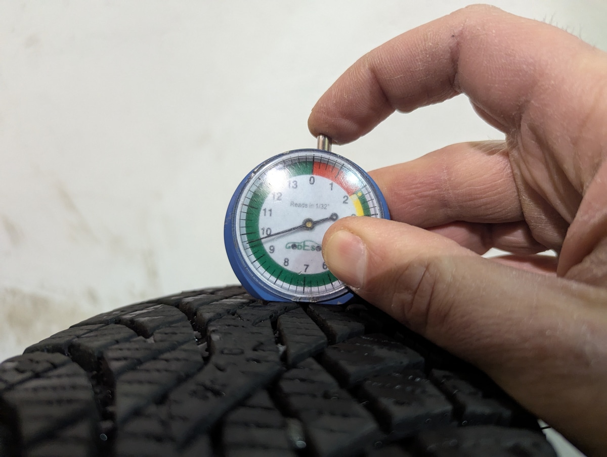La mesure de la profondeur des sculptures du pneu est exprimée en 32ème de pouce.