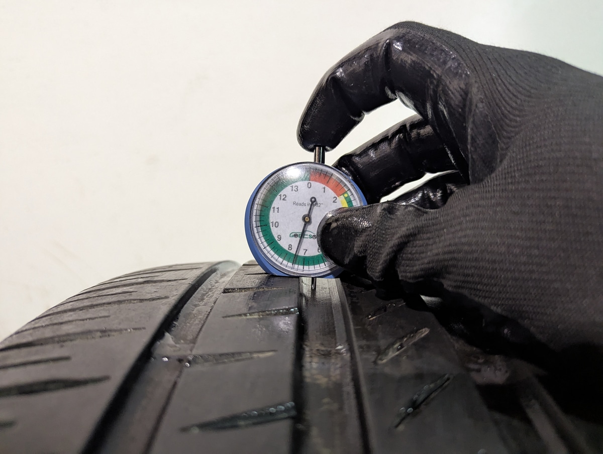 La mesure de la profondeur des sculptures du pneu est exprimée en 32ème de pouce.